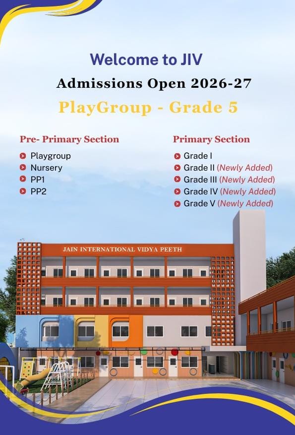 Jain International Vidyapeeth (JIV) was established with the inspiration and blessings of "Vardhaman Taponidhi Acharya Naychandrasagarji" Suri's disciple, Mahashatavdhani Abhinandan Chandrasagarji Maharaja. As a premier educational institution, JIV is dedicated to nurturing young minds through a harmonious blend of modern education and timeless cultural values. Rooted in the rich traditions of Indian heritage, we focus on cultivating intellectual brilliance and moral integrity to shape a brighter future.